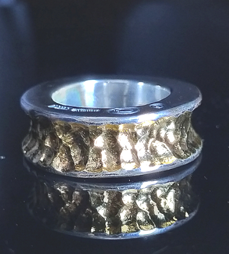 Pure Gold Wrap 10 x 6mm Wide Bolo Neck Chiseled Reel Ring [R-196]