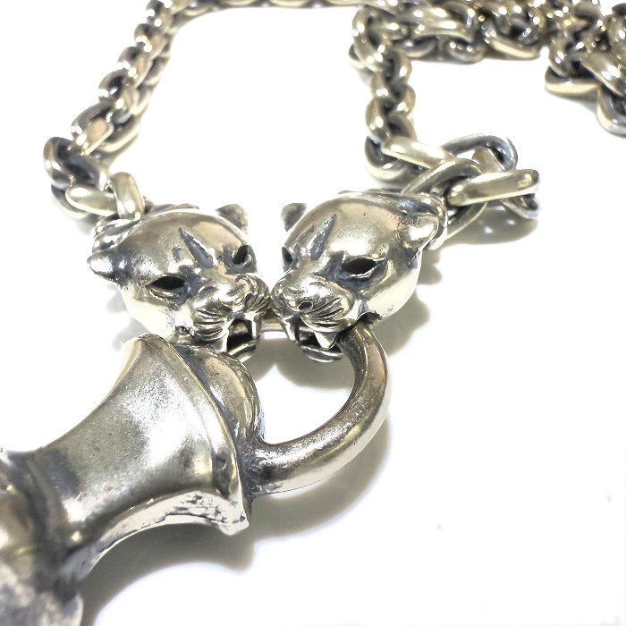 Detail: Large Skull On 2Skulls Hammer Cross Double Face Dagger / 2Panthers / Small Oval Chain Length: 76cm